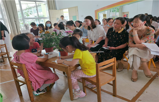 活动的一开始,是分别由三个幼儿园的青年骨干教师带来的三场原创集体教学活动。春幼的谭雨菲老师执教大班综合活动《我眼中的菊花》,谭老师教态亲切自然,能够敏锐地抓住秋天最显著的自然资源菊花,带领幼儿开展观察探究活动;圩塘幼儿园的赵霞老师执教大班社会活动《特别的我》,赵老师的准备活动十分充分,及时抓取活动班级幼儿自身的资源,开展了这次找个性表不同的活动;新桥幼儿园的王竹君老师执教大班美术活动《我》,以“我”小班和大班的变化为引子,指导幼儿描绘“我”的肖像画。