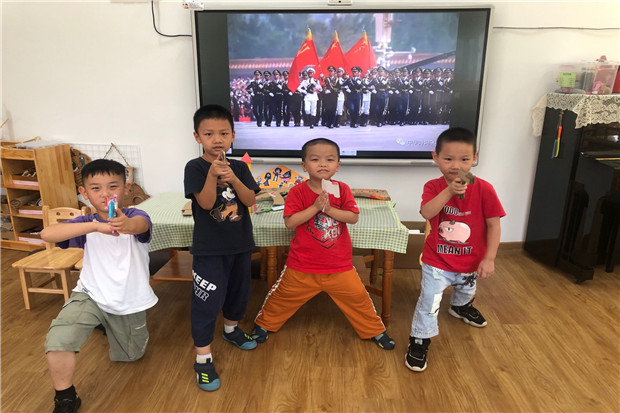 阅兵式彰显着新时代人民军队的风采,威武的军容,精彩的呈现,在一个个幼小的心灵里开花结果。惊叹的同时,孩子们与教师共同讨论国庆阅兵需要准备什么、阅兵队列和兵器等,并在国庆大阅兵练习活动中体验军人叔叔们的英姿勃发!航天十二号的成功发射,牵动了多少人的心,孩子们也想要探秘太空。他们通过观看火箭发射的视频以及用多种材料制作火箭,展开了自己航天梦的蓝图规划。通过这一系列的活动,不仅加深了孩子们对祖国的认识,更培养了爱国情感。少年强则国强,少年富则国富,我骄傲我是中国娃!
