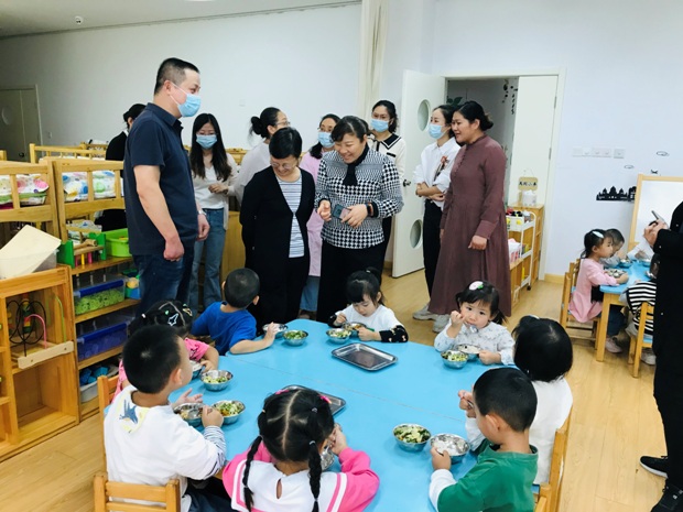 检查组首先听取了该园卫生保健工作情况汇报,感受到该园卫生保健工作的规范化、细致化;随后,检查组对照《常州市托幼机构卫生保健评估细则》分工查阅了“一日安排及体格锻炼、膳食管理与营养、健康检查与传染病防治、卫生与消毒、伤害预防与健康教育”等台账,称其台账归档整齐,内容齐全;接着,检查组在分管副园长的陪同下查看了保健室、食堂、库房及校园环境,实地进行了指导;最后,检查组走进活动室观摩幼儿进餐,对餐前餐后管理给予了充分的肯定。在最终的反馈中,检查组结合检查情况分版块进行了系统、详实的阐述,充分肯定该园卫生保健的亮点工作,同时提出了更高的要求。
