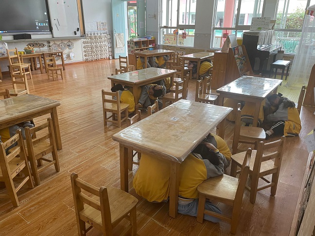 为了树立“安全第一”思想,帮助幼儿掌握避震逃生,自救自护的方法,提高幼儿安全防范意识和应对突发事件的综合能力,新北区九里幼儿园于2021年10月13日下午组织全体师生开展“防震抗灾你我同行”应急演练活动。