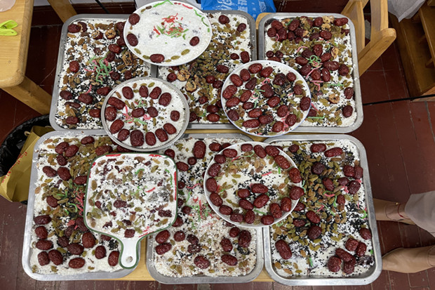 美味的重阳糕制作好啦,蒸熟后,孩子们看着热气腾腾的重阳糕开心极了,他们将自己做好的重阳糕带回家送给爷爷奶奶品尝,并给爷爷奶奶们敲敲背捶捶腿,感谢爷爷奶奶对自己的关心和照顾。