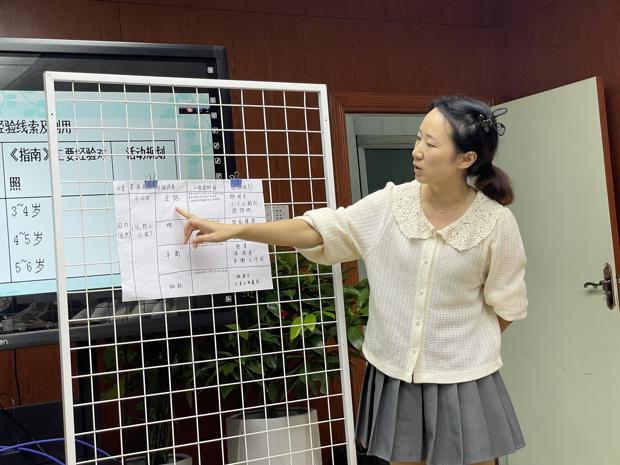 此次研讨,紧扣幼儿园的研究课题《畅享自然下幼儿园运动课程之实践研究》,将自然资源与运动相结合,分三个环节展开:第一环节,大家谈谈自己对动态资源地图的理解;第二环节,打破常规分组方式,抽签分成三组,每组自定一名组长,将同组老师分享的资源名称、经验线索、《指南》主要经验和活动规划进行汇总;第三环节,集体交流分享,各组分享本组的集体智慧,许多人的想法碰撞在一起,就擦出了智慧的火花。集众人智慧之后,主持人沈婷月老师现场梳理出了初步的动态资源地图。最后陆园长进行了总结引领,她指出动态资源要落实在我们的游戏中、指南中、行动中,要理清资源与课程的关系、资源与课程生发的关系。陆园长的总结引领再次打开了老师们的思路,让大家充分认识到了自然资源的教育价值。