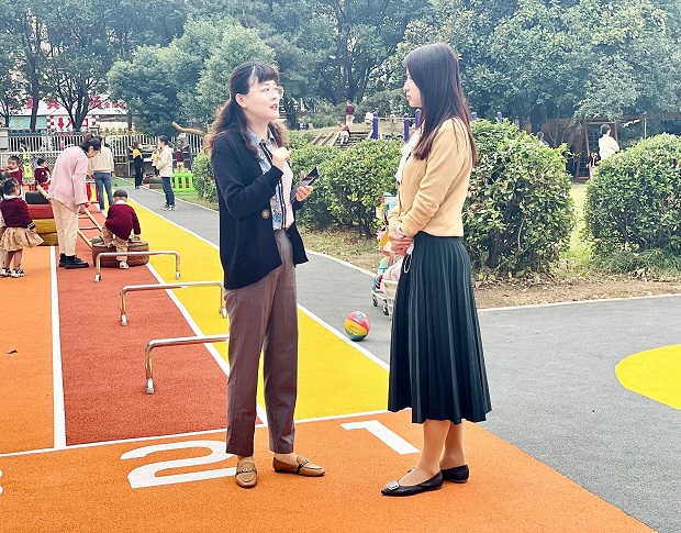 为发挥以点带面、典型示范作用,全面提升幼儿园教师对户外活动环境创设和户外游戏组织的能力,2021年10月19日上午,武进区芙蓉幼儿园刘静贤园长携部分一线教师观摩学习了百丈中心幼儿园的户外混龄活动,我园以整洁精致的户外环境、富有挑战和野趣的户外活动文化热情接待姐妹园的客人。