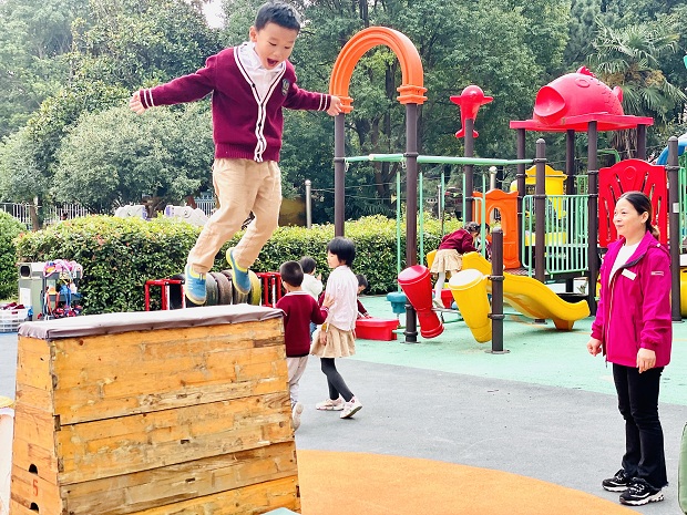 以加强幼儿体能为准则、以满足幼儿需求为导向,我园创设了自主开放愉悦的角色体验区、自由探索撒欢的自然运动区、快乐挑战野趣的立体运动区、多元可变精彩的创意运动区,实现了空间上的开放,也为幼儿提供了多种选择的可能。