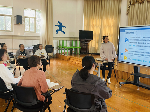 教研组长叶婷老师首先向大家讲解了益智区的核心概念和价值体现,接着结合各班益智区开展的实际情况就“益智区环境创设”“游戏材料的投放”“教师的指导策略”等方面进行了分享交流。大家积极思考,各抒己见,充分体会到了益智区活动能培养幼儿观察、分析、推理、语言表达等能力的教育功能和价值。