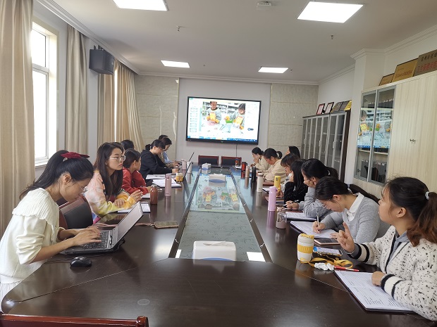 首先,中大班的各位老师针对近阶段幼儿在帮厨体验室的操作情况提出了自己的看法与问题。在实践工作中老师们集中遇到的问题体现在工具的使用、幼儿操作技能的尝试及经验的提升等方面。卞园长根据问题进行了对话“班级生活区和帮厨体验室同时开设的差异是什么?”。在对话中老师们分别从操作空间、幼儿发展等方面进行了阐述。最后,卞园长总结到:第一,教师退位,思考各年龄段幼儿的发展需求,把脉本班幼儿的能力;第二,整理适宜的美食菜单,让幼儿达到满满的成就感。