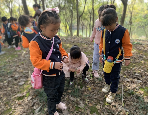 茁壮成长的树木,星星点点的无名小花,还有那飘落在地上的缤纷落叶,令孩子们对大自然产生了深深的喜爱。孩子们走在阳光草坪,奔跑着,玩着木头人的游戏,玩着老鹰捉小鸡的游戏,唱着歌儿,跳着舞,“捡树叶”、“快乐分享”、“你追我跑”等趣味横生的小游戏令远足活动充满欢声笑语。