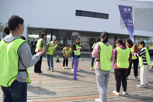 伴随着和煦的阳光,我们开始了游戏前的热身活动《按摩舞》、《教练说》、《摇摆舞》、《小鸡叫》。快乐的热身活动瞬间提升了团队的凝聚力,增进了成员之间的感情。