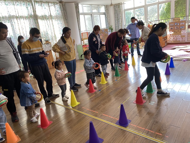 为了让此次活动能圆满进行,圩幼从场地布置、教室安排、师资配备,课程内容等方面精心策划,助力活动,确保参加活动的每一位宝宝和家长都能感受到亲子游戏的愉悦,体验幸福的感觉。