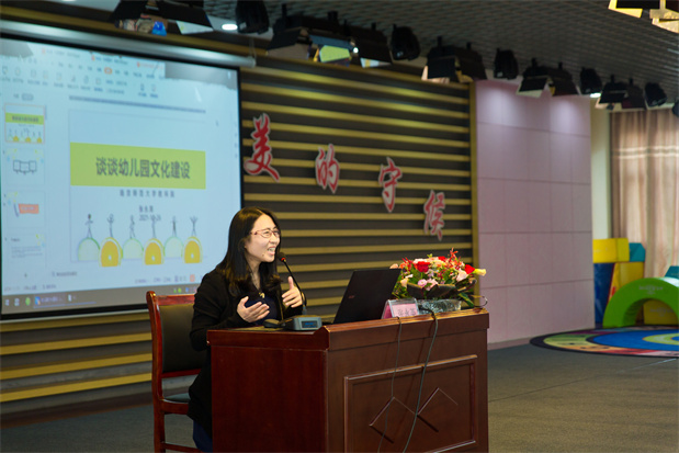 南师大副教授张永英和大家分享了《谈谈幼儿园的文化建设》讲座,张教授例举了大量文化建设的案例,深入浅出地让参会老师明晰了文化的概念、结构、核心理念、文化建设的重要和必要性等文化建设要素,鼓励大家通过发现和讲述实际工作中的故事凝聚文化建设的力量。