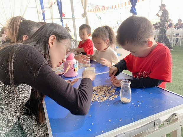 “春种一粒粟,秋收万颗子”,孩子们用自己打出来的稻谷制作稻米瓶,从一开始的纯手工剥稻壳到后来借助工具脱壳,孩子们不仅感受到了农业生产的不易,也更深刻地体会到了珍惜粮食的意义。