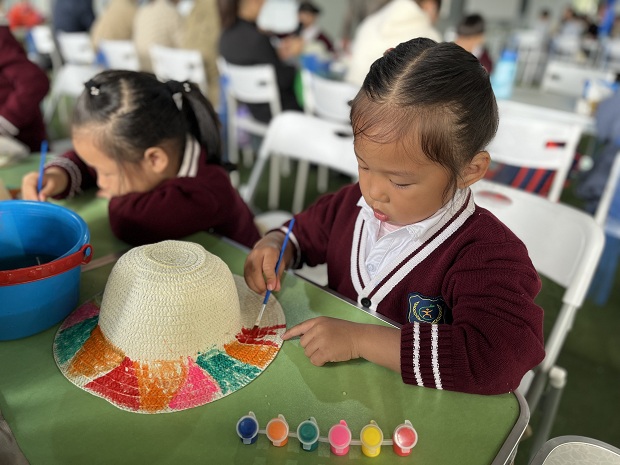 举世闻名的两万五千里长征中,贺龙以“草帽计”予以敌人重击。孩子们在感受先辈智慧的同时,带着自己的设计图对草帽进行了装饰,在家长的帮助下,孩子们完成了一顶顶西瓜帽、瓢虫帽、彩虹帽……