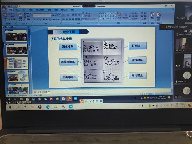 首先邹榴玉老师通过视频分享的形式,结合本班的职业体验课程《小小洗车工》进行了课程汇报。邹榴玉老师从对洗车工的职业了解,到洗车的工具和步骤,最后幼儿在实践操作中计划、讨论发现问题并解决这几个内容进行了汇报,邹老师的汇报内容带着老师们走进了大四班的洗车工课程中,也让老师们感受到了孩子在实践游戏中的乐趣。