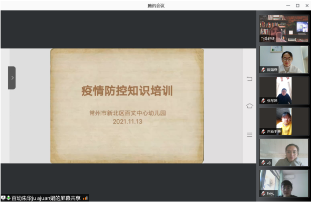 疫情就是命令,防控就是责任!为了进一步强化教职工疫情防控意识,提升自我保护能力,确保师幼生命安全和身体健康。2021年11月13日下午百丈中心幼儿园召开关于疫情防控工作的线上会议。