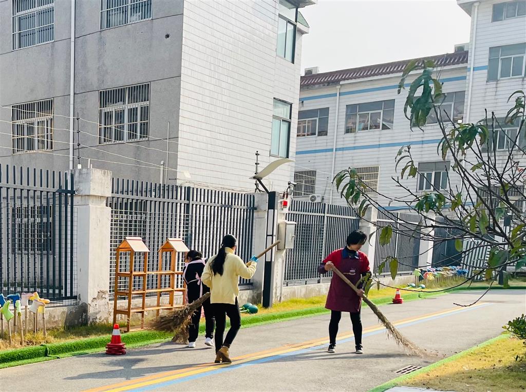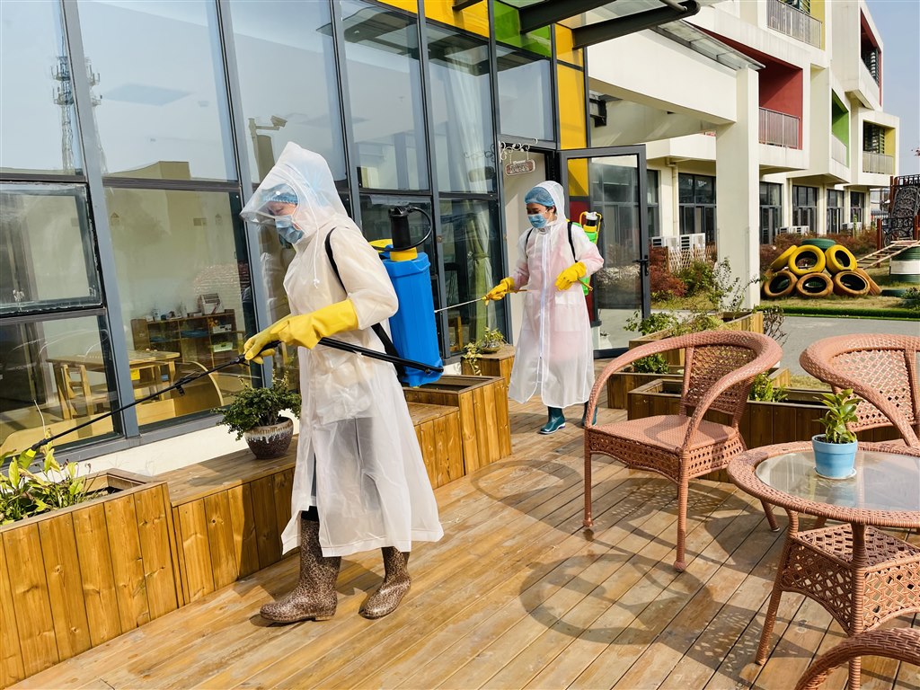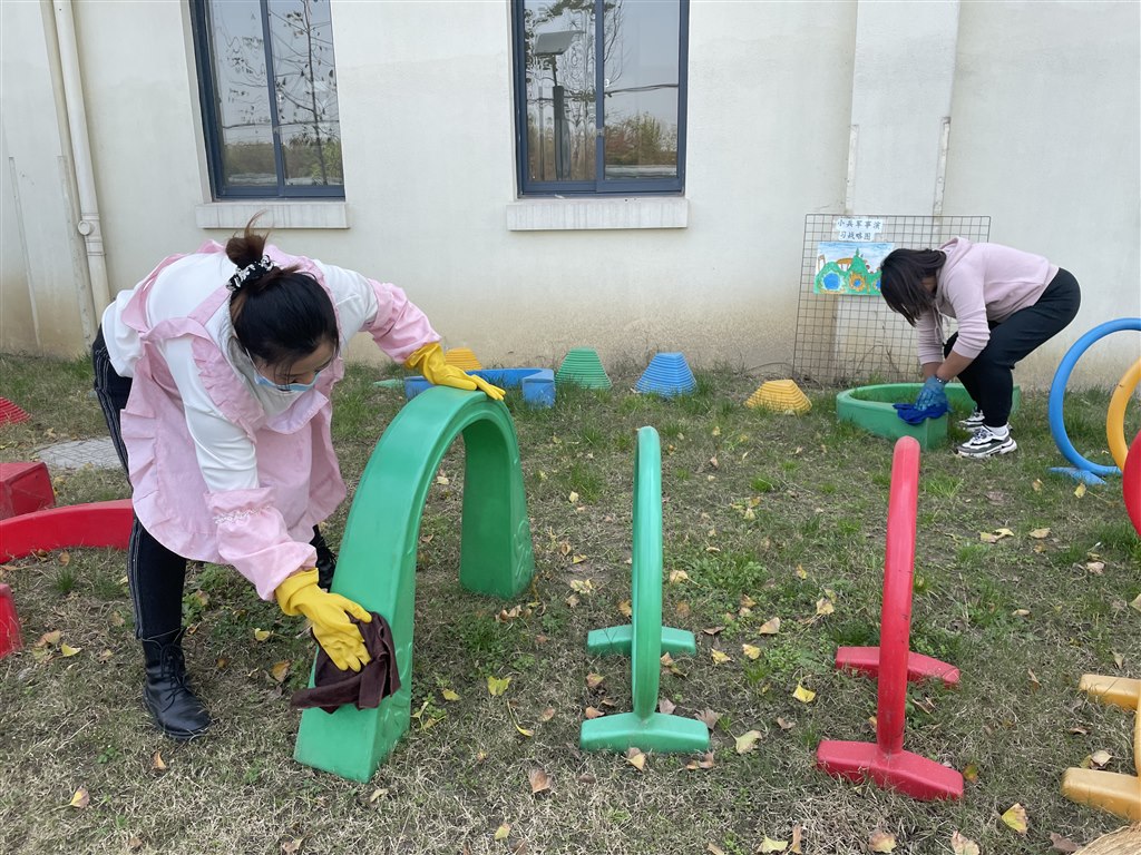 常州疫情突发已经逐渐过去,虽然幼儿园的开学时间待定,但孝都幼儿园的全体教职工都在为复课做着积极的准备。为了保证每一名幼儿复课后的健康成长, 2021年11月16日孝都幼儿园全体教职工开展全面消毒消杀,清洁卫生工作,全体教职工严格按照消毒注意事项,认真细致的对幼儿园走廊、活动室、睡眠室、卫生间等室内外环境进行彻底清洁、消毒。门把手、玩教具、窗台、空调、玩具橱等一个死角都不放过。户外的游戏场地、滑梯等大型玩具也进行了全面的清洁消毒。