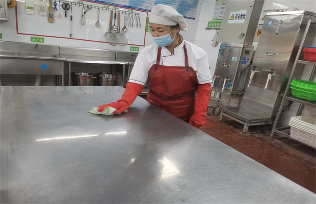 食堂食品处理区严格实行全封闭管理,非本食堂人员不得进入食品处理区,食堂后门属于食品供货专用通道,送货人员一律在门外进行监测、登记,不得进入园内,由本园食堂工作人员进行验收菜品。并对食堂操作空间、设备进行清扫、消毒和通风,做好卫生用具的清洗消毒和定位保管。