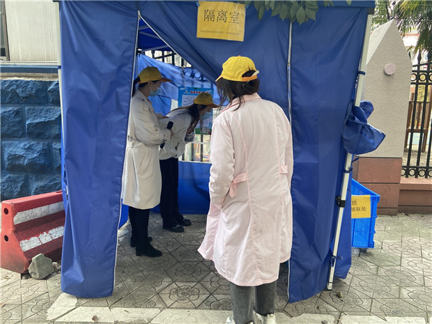 做到全员性防控,保证每一名幼儿安全入园。幼儿独立入园,演练过程中,假定晨检发现一名教师(幼儿)体温异常,采取不入园,由管理人员、保健老师、班主任等相关责任人将发热人员其安置于校外隔离点,并进行进一步处置,把好入园第一关。