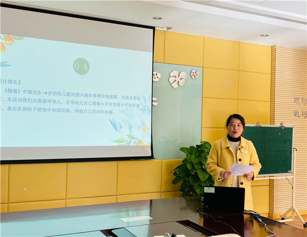 活动现场,季金亚、万丽娜、蔡小丽、袁星雅……共计10名参赛教师分别从说教材分析、活动目标、重难点、活动准备、以及活动过程等方面,或借助多媒体展示,或借助教学具,生动地进行演示讲解,详细阐述自己的教学设计。优雅的教态、流利的陈述,清晰的讲解,独特的教学设计,既表现出了扎实的教学基本功,又体现了一定的教育教学理论水平,展现了较好的综合素质和能力,充分展示了教师们驾驭理论和科学设计教学活动的能力。最后,5位评委就本次优秀说课展示活动进行简要点评,并结合“教师教学活动设计方案评价表”进行打分。