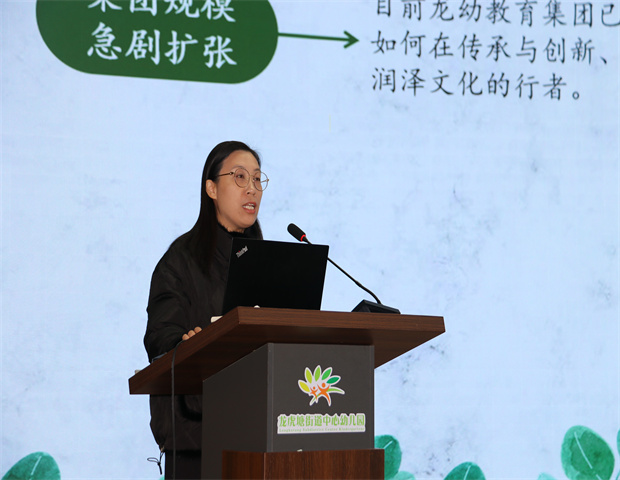 活动伊始,主持人吴紫阳副园长向与会教师介绍了上午半天的活动流程和核心价值。高亚媛园长以《赋能教研,跑出教师发展加速度》为题,聚焦“集团规模急剧扩张、师资力量急待强化、课程特色有待亮化”三大问题,从“三个基于,踏准教研步态”、“三组相对,做实教研常态”、“三类变化,描摹教研样态”三大版块,向大家详细阐述了龙幼教育集团园本教研的进阶过程,也期望龙幼人能一如既往以教研为经,课程为纬,寻找成长攻坚的坐标系,跑出教师发展的加速度。