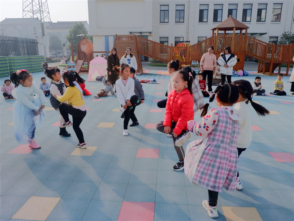 上午9点,冬日游园会准时拉开序幕,为了让活动更好的开展,我们先进行了热身运动,果果组的全体小朋友和老师围成一个大圈,跟着主持人和音乐的节奏一起跳欢乐的兔子舞。