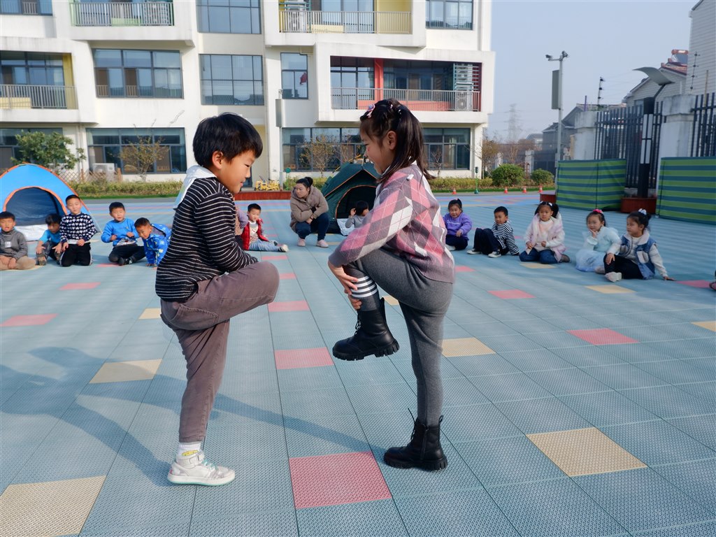 在结束热身运动后,孩子们围成一个大圈坐下,短暂的休息过后,我们开始了第二项活动:欢乐斗鸡,孩子们都纷纷表示要参加这个游戏,在主持人讲解游戏规则后,“小鸡”们已经迫不及待地要展示自己的实力啦!快跟上我们的镜头一起去看看吧!