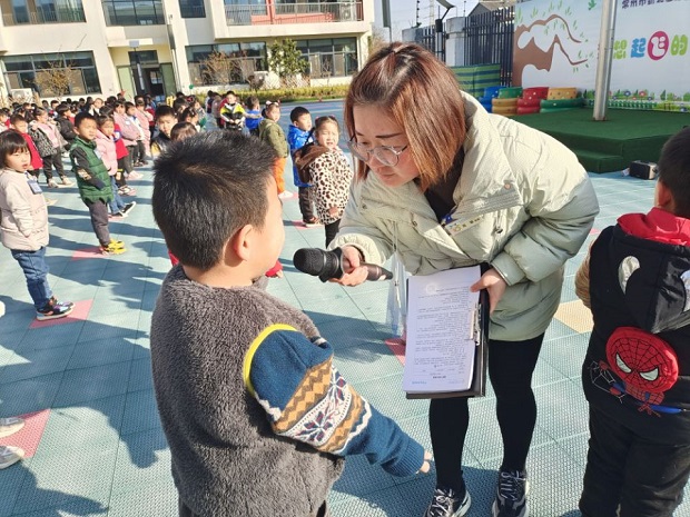 最后由苗苗三班的周桀老师围绕“冬季户外混龄游戏”这个主题进行国旗下讲话。户外混龄游戏一直是幼儿非常喜爱的,周老师通过与幼儿现场互动问答,让孩子们知道了户外混龄游戏虽然很有趣,但在玩的时候也要注意自身的安全:在游戏中要遵守游戏规则;走、跑、跳的活动中小眼睛仔细看,不推不挤,懂得轮流有序地玩;学会躲闪,发现问题、遇到困难要主动告诉老师。