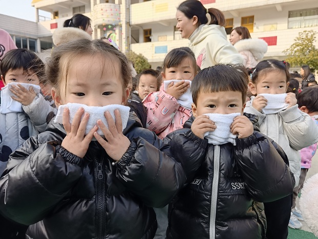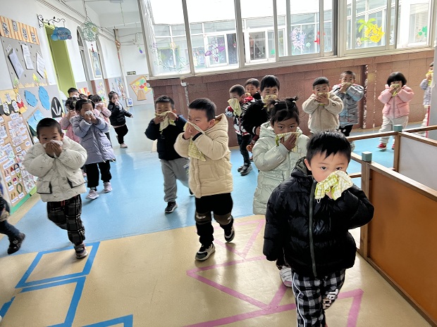 下午3点整,随着急促的警报声响起,各班教师迅速组织幼儿按逃生线路进行演练,幼儿拿着湿毛巾,捂住口鼻,弯腰小步快走,途中各班幼儿井然有序地跟随班级老师到达安全地带。疏散完毕后,各班老师及时清点人数,所有参与人员各司其职,分工明确,整个演练既紧张又不慌乱,仅用时3分08秒。