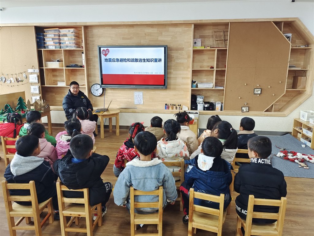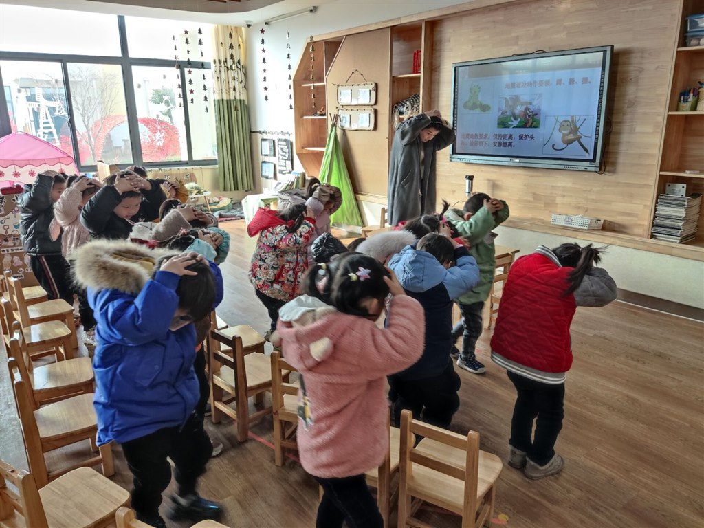2021年 12月22日9点46分常州发生4.2级地震后,在12月23日上午孝都幼儿园随即开展了“地震来了我不怕”为主题的系列活动。