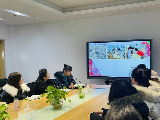 孝都幼儿园大班组的王佳力分享了“幼儿自主散步”课程故事,讲述了教师通过赋权、退后的隐性支持,在师幼共建中创生了独一无二的班本课程,让聆听的老师们看到孩子们探究、解决问题能力的提升。章梦吉老师分享了关于“草莓”的种植课程故事,讲述了老师根据幼儿的兴趣在种植区进行了草莓苗的种植,孩子们通过“调查—种植—观察—发现—对比—验证—记录—反思”的过程,主动体验快乐学习的意义。