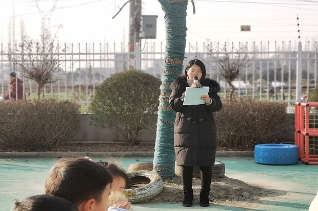 八点五十五分运动会开幕时准时开始,大班的孩子们迈着整齐划一的步伐迎出国旗并将国旗升起,五星红旗迎风飘扬,激烈昂扬的国歌声响彻在操场上所有人的心中。汤园长进行致辞后,第一届冬运周的大幕就此展开。