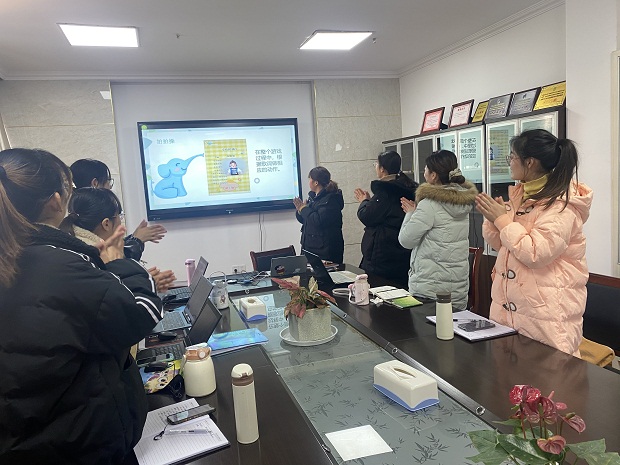 活动伊始,在丁丽老师的组织下共玩游戏“拍拍操”,老师们根据歌词内容做相应的动作,瞬间在冬日的寒意中感受到了别样的温暖,体验到了运动的快乐,同时也活跃了教研氛围。