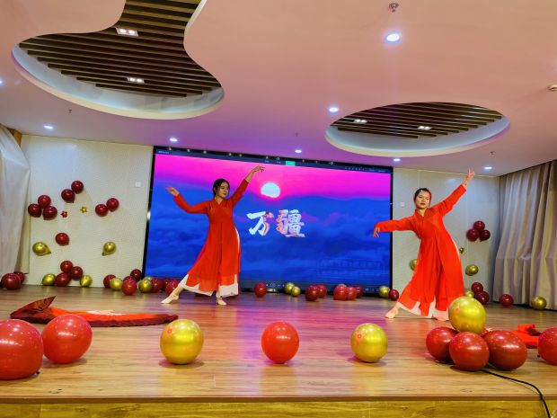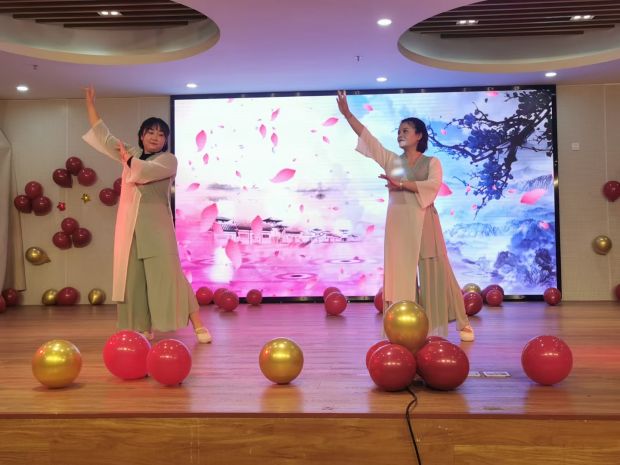 双人组的老师们也不甘示弱,张英老师、张梦娇老师带来了轻盈优美的《桥边姑娘》,汤楠老师、章梦吉老师带来了英姿飒爽的《万疆》,陈馨瑜老师和尤一茜老师带来了欢快可爱的《桃花朵朵开》……看得观众们情不自禁的响起了热烈的掌声。