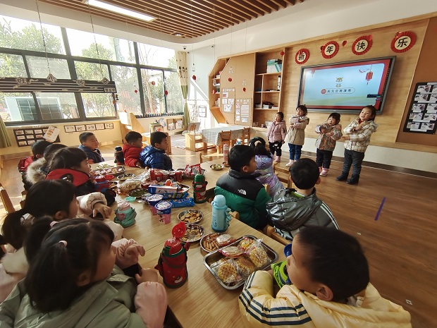 小朋友们分享着爸爸、妈妈为他们准备的各种美食,欣赏着同伴们带来的各色自己擅长的节目,玩着有趣的游戏,共同庆祝这个欢乐的时刻,我们在轻松愉快的氛围中诠释着爱与快乐,把快乐传递给大家,提前渡过了一个快乐的节日。