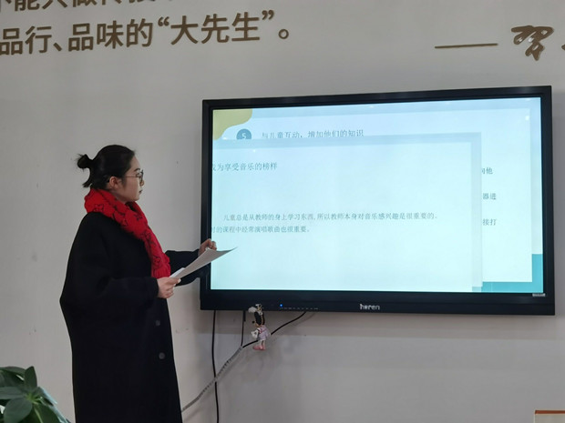 研讨结束后,由徐嘉宁老师以“教师支持音乐区学习的策略《0-8岁环境创设(音乐区)》”进行了读书分享,聆听书中列举的活动再一次明确了音乐区游戏对幼儿的发展意义任重而道远,老师们应该将音乐贯穿于一日活动并且多与儿童互动,增加他们音乐的知识,成为享受音乐的榜样。另外,老师还要认可儿童,观察并记录儿童的音乐技能,满足儿童所有的学习需求促进幼儿营养素养的提升和发展。