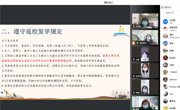 为加强家园沟通,有效做好疫情防控宣传和指导,保证家长对幼儿复学要求的了解,取得家长的积极配合,4月15日晚七点各班分别召开了线上家长会。