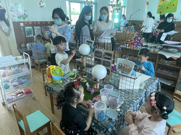 为进一步贯彻落实《3-6岁儿童学习与发展指南》精神,发挥年级组的团队合作的精神,以相互学习共同提高为目标,开展以年级组为单位的区域教研活动,提高平行班老师分析解读区域活动中环境的创设、材料投放的能力。2022年5月6日上午,安家中心幼儿园对中二班开展了区域调研。