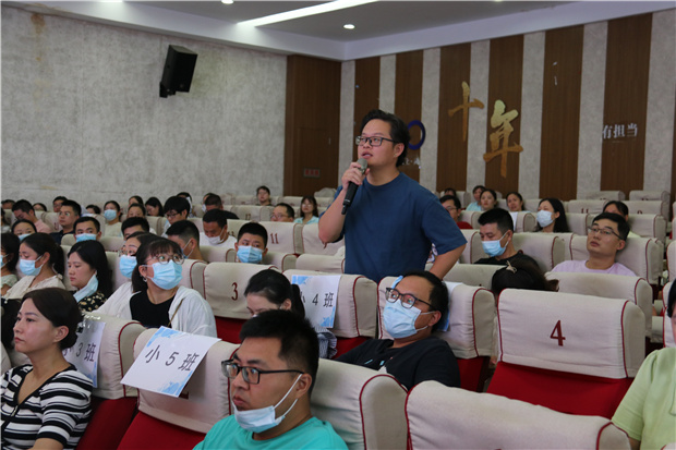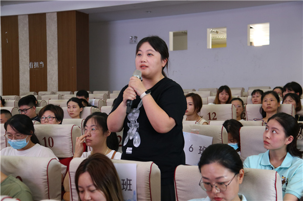 会议的最后一个环节是家长提问环节。为了缓解家长们的入园焦虑,本次家长会特地延长了这个环节的时间,让家长们充分自由提问。家长们的提问主要集中于饮食、安全和家园合作等几个方面。园长王小洁和后勤主任朱婷耐心倾听和逐一解答了家长们的疑惑。