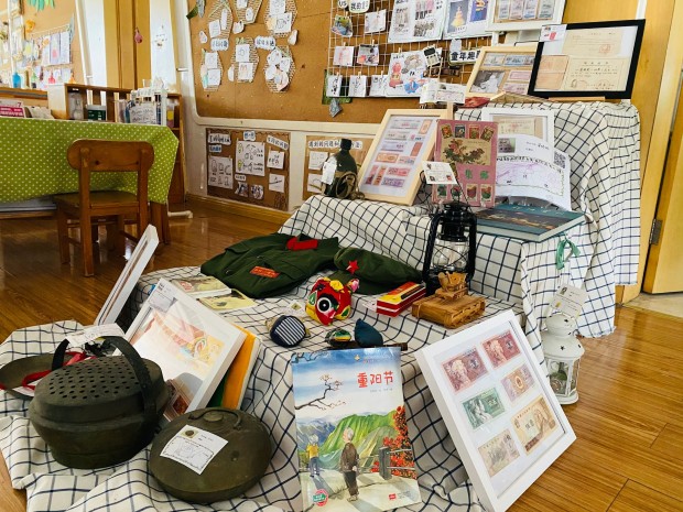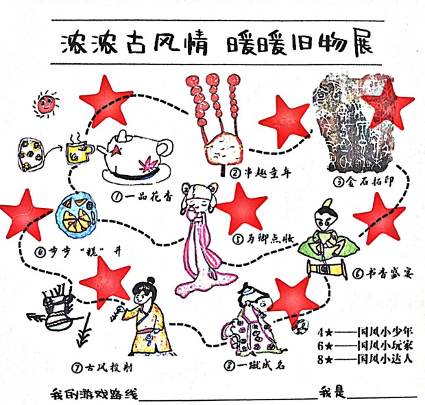 国庆与重阳相逢,爱国与敬老相遇。怀着一份暖暖的温情,抱着一颗红红的中国心。小龙娃们以“古风游园会”和“旧物博物馆”为双主线,通过“班本探究+集市游园”的形式展开了系列探究。前期,围绕“融节”主线,各班通过调查、互动呈现了班班有特色的微课程;中期,追踪“儿童”立场,各班努力让儿童成为节日的主人。孩子们在兴趣中生发疑问,在问题中自主调查,在调查后分享交流,“游园玩哪些项目?场馆怎么布置?”“游园当天玩什么?”……孩子们用自己的方式逐步打开了中华文化与传统经典的神秘面纱。