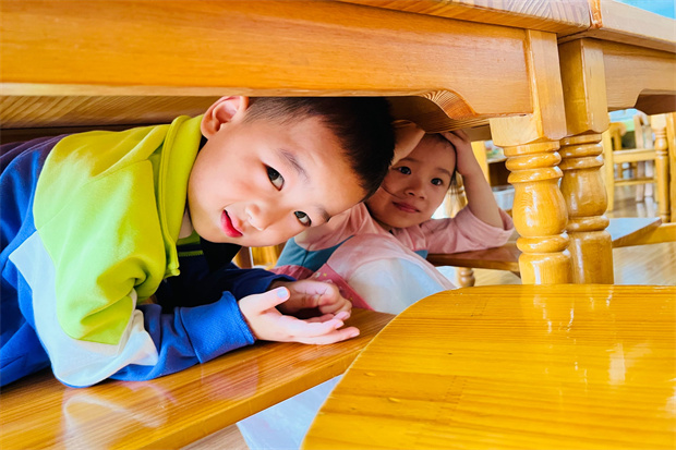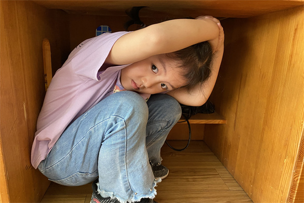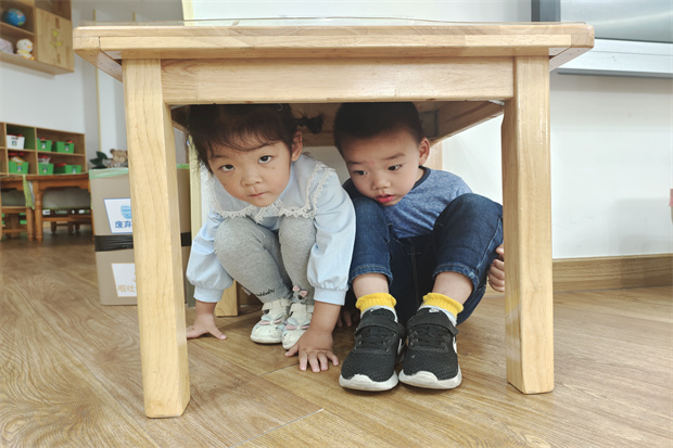 随着第一声警报拉响,孩子们根据前期学到的防震知识,快速地寻找墙角、桌底、钢琴下等相对坚固的地方进行躲避,并用双手抱住头部,紧张却又镇定。待到第二声警报响起,全体幼儿在教师的引导下快速、有序地从室内撤离,按照既定的逃生路线在操场集合,整个过程有条不紊,始终关注幼儿安全。同时各楼层负责人进行巡视,确保不落一人。到达指定地点后,各班级清点人数,并向园区负责人报备。