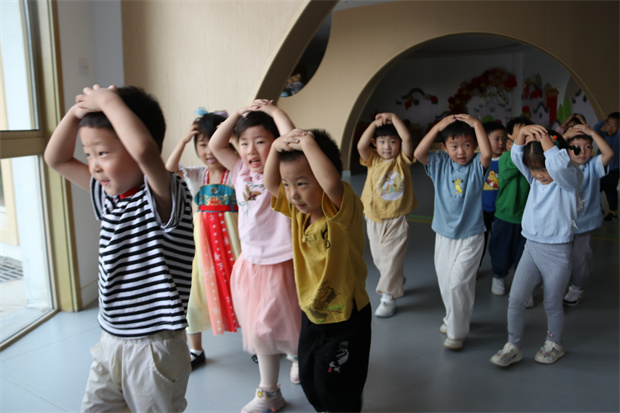 前期,各园区根据实际情况拟定了演习防震疏散演习预案,并召集全体教职工进行方案解读,明确疏散线路、点位分工等。演练正式开始前,各班级根据幼儿年龄段特点,有针对性地组织地震安全教育活动,通过儿歌、故事、安全教育平台视频等形式,让孩子们了解地震逃生的时机、安全躲避地点和方法,以及安全疏散路线等。