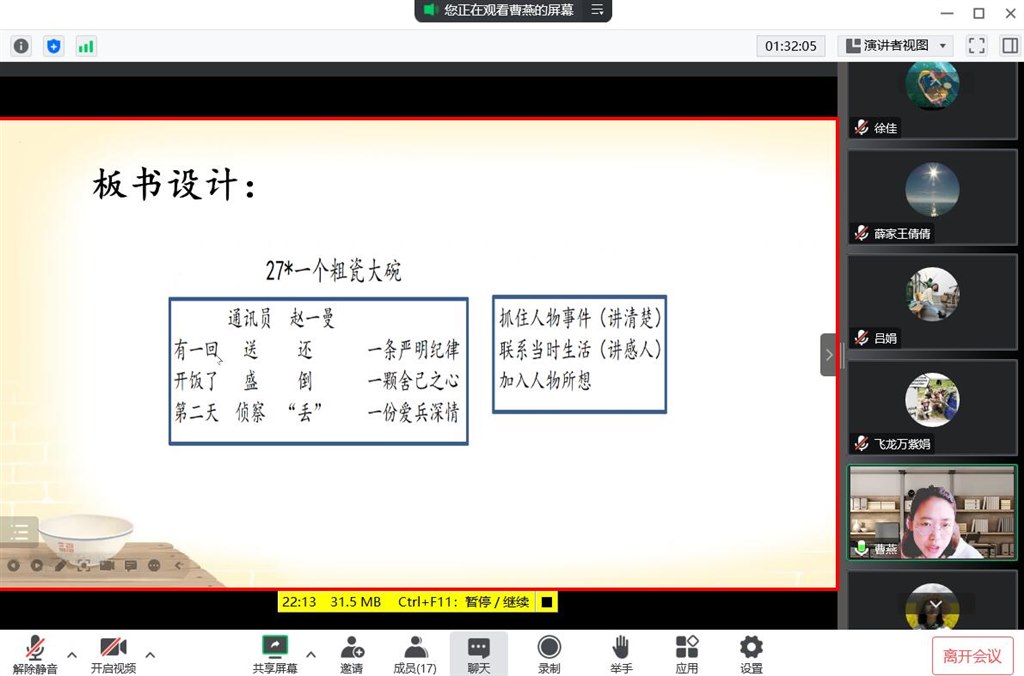 天时人事日催更,冬至阳生春又来。冬至这日,曹燕名教师成长营的老师们齐聚线上,在领衔人曹燕老师的带领下,结合成长营研究项目,进行了课例展示。