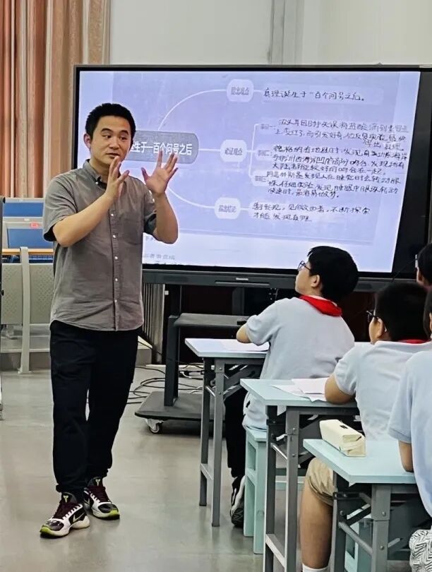 曹老师语言幽默风趣,聚焦单元语文要素引导学生发现议论文用具体事例说明观点的方法。吕老师上课如行云流水,聚焦“趣”字引导学生发现文本表达的奥秘。