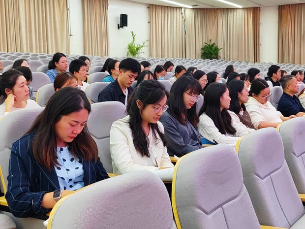 潘院长以“给青年教师专业成长的三个建议”为主题作专题培训指导,他建议青年教师要养成良好的专业生活习惯、积极参与教研活动以及开展学业质量提升研究。潘院长深入浅出的讲解让青年教师明晰了专业成长的路径,也增添了笃实前行的动力。