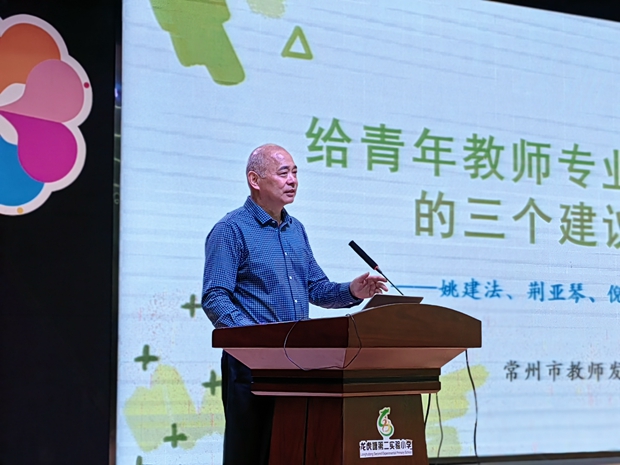 本次活动有幸邀请到常州市教师发展学院潘小福院长做专题讲座。潘院长由衷感慨成长营为青年教师发展提供了优质平台,并鼓励青年教师追求内生生长,在成就学生的同时成就自己,同时倡导“让培训像呼吸一样自然”,改变研究方式,提升教研效率。