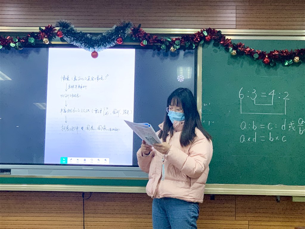 孙晓老师执教的是六年级下的《比例的基本性质》一课。孙晓老师通过巧设学习任务单,学生能够自动提取已有的知识和经验,通过迁移与应用解决新的问题,自主探索,验证关于比的基本性质的猜想。用大问题引发思维的大空间,引发了学生各种奇思妙想。