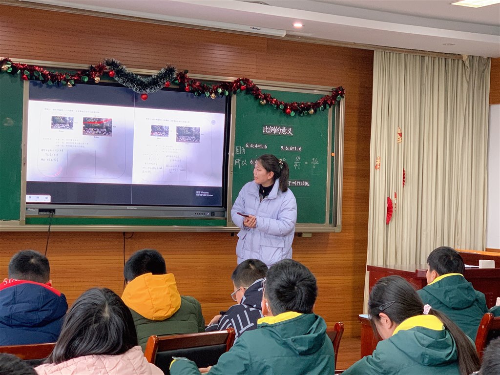 褚君老师执教的是六年级下《比例的意义》一课。褚君老师依据学生的生活经验和认知规律,设计了“问题情境——观察思考——计算比值——发现规律——揭示概念——拓展深化——巩固练习”的教学活动,通过独立思考,合作探究,归纳说理等交流辨析过程,体现完整的、深度的学习活动,较好地完成了本课的教学任务。