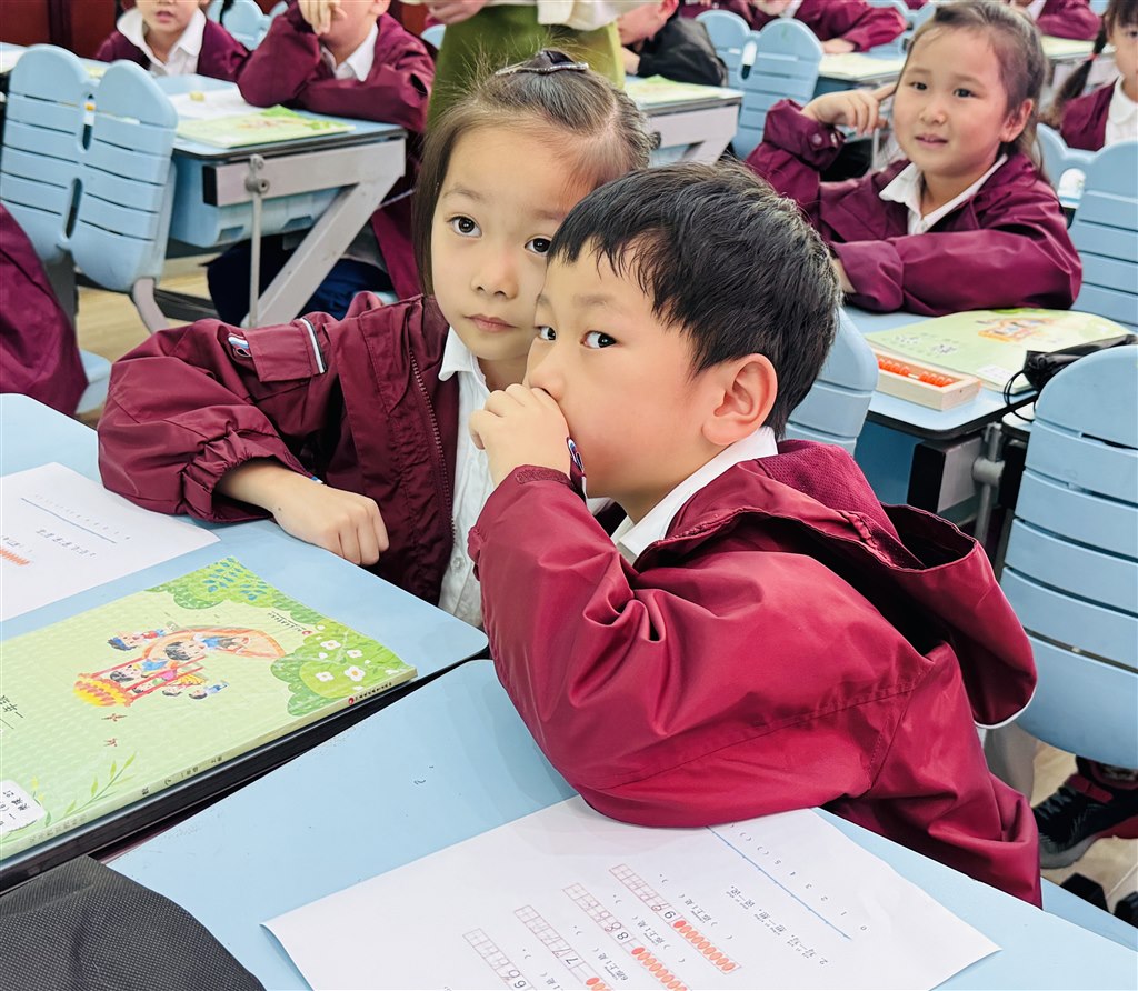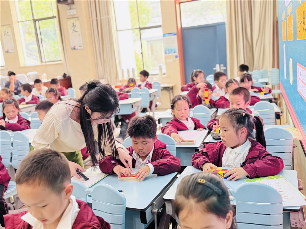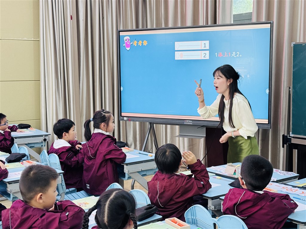 最后,金坛区华罗庚实验学校尧塘分校的赵丽娟老师带领一年级的小朋友学习了《认识6-9》一课,通过数一数、摆一摆、拨一拨、说一说、写一写等活动,让学生从视、听、说、感等多种感官去感知数学,理解数的意义。赵老师精准把握一年级儿童的课堂心理,极大地调动了学生的课堂注意力。生活情境的融入把数学课堂变得丰富多彩,让教学更生活化、形象化,培养了学生在生活中感知数学的能力。