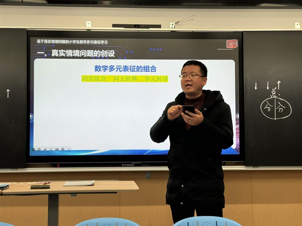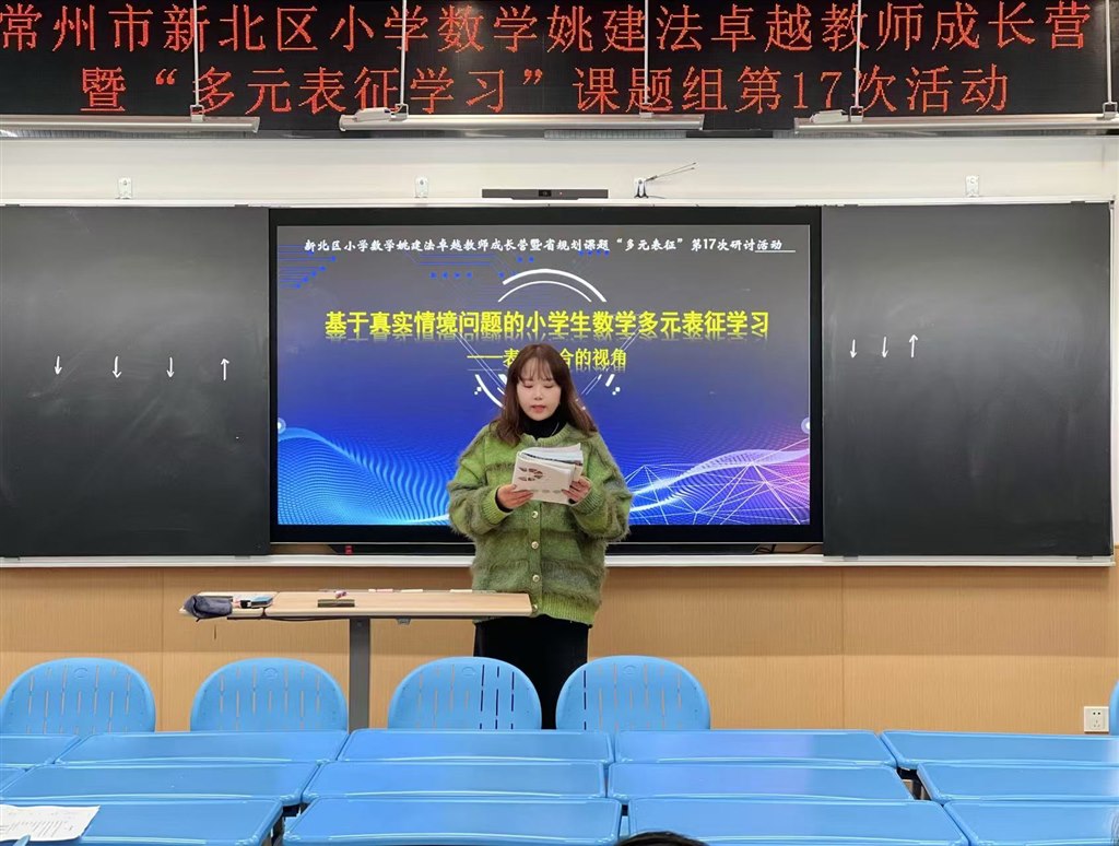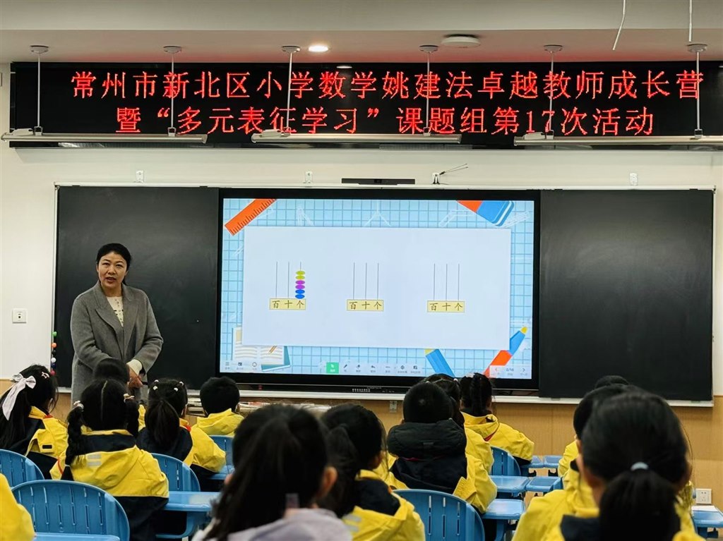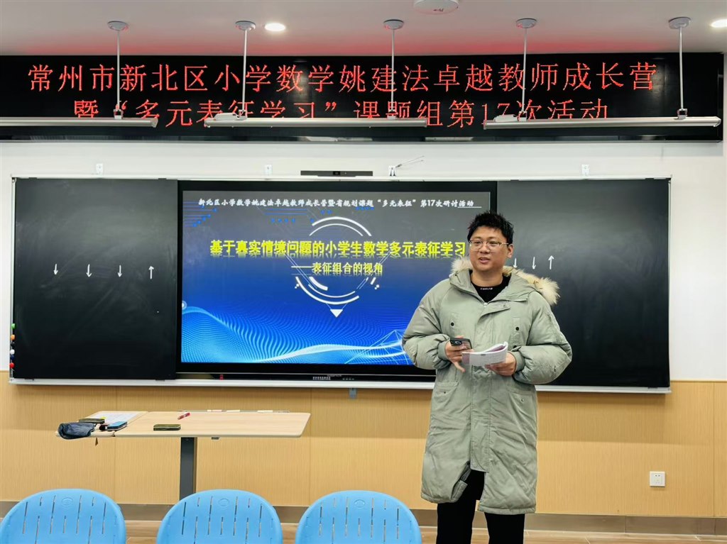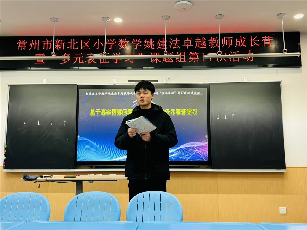 浅冬悄临,寒意渐生,微阳初照,暖意融心。12月11日下午,新北区小学数学卓越教师成长营暨“多元表征学习”课题组第17次活动以“基于真实情境问题解决的小学生数学多元表征学习”为主题,于新北区新龙湖小学开展。