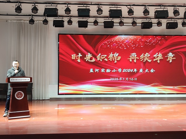 时光织锦,岁月沉香,过去的一年,我们沐光奋进,一路沉淀、突破、升华。为更好地回顾和总结学年工作,展望未来的机遇与成长,2025年1月16日上午,全体教师齐聚报告厅,召开孟河实验小学2024年度大会。会议由孙建顺副校长主持。