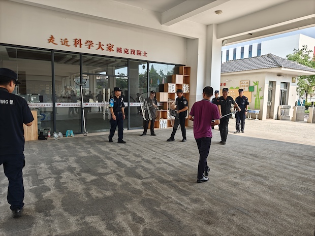 理论学习结束后,培训进入实操反恐防暴演习环节。为模拟真实场景,设置了“不明人员持械试图闯入校园”的突发情境。在专业人员的指导下,新魏幼儿园参训人员与其他学校的安保人员协同配合,迅速启动反恐防暴应急预案,整个演习过程中,参训人员反应迅速、动作规范、配合默契,严格按照既定流程完成了警戒、阻拦、控制等关键动作,充分展现了理论学习成果向实际操作能力的转化。